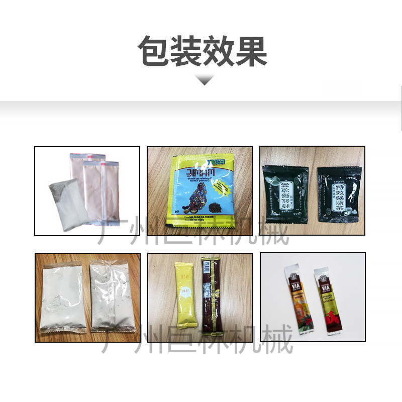 本機(jī)采用光電眼控制系統(tǒng)、螺旋計量、步進(jìn)電機(jī)驅(qū)動性能可靠穩(wěn)定.從計量、充填粉、面粉、、制袋、打碼到產(chǎn)品輸出一次完成、適用流動性較好的粉沫、豆胡椒粉、奶粉、發(fā)酵粉等物料.