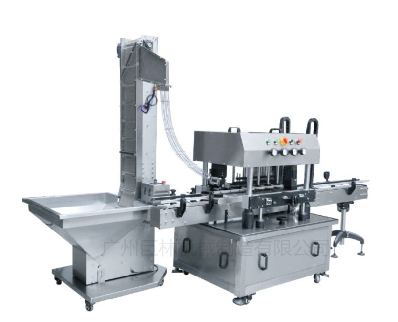 3、瓶子在向前運(yùn)行的過程中,上蓋器自動(dòng)下蓋,瓶蓋被四組搓蓋輪自動(dòng)擰緊。既可用于單機(jī)生產(chǎn),故障自動(dòng)停機(jī),更是連線生產(chǎn)的理想機(jī)型。